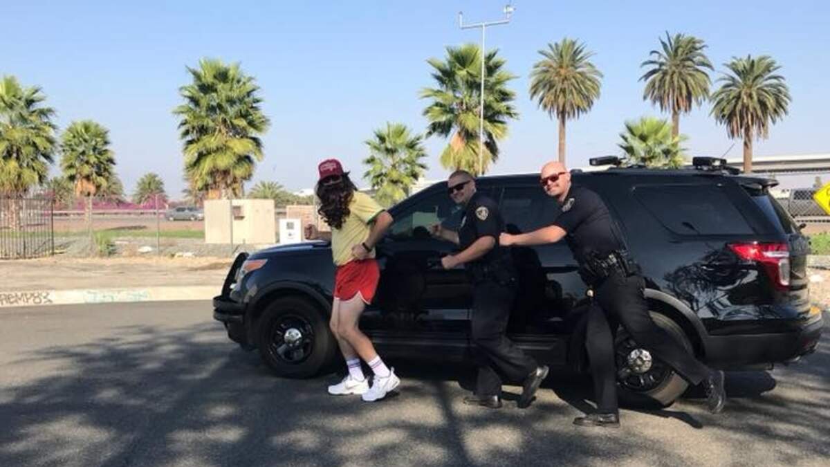 Riverside police posted a photo and video of the would-be Gump on their Facebook page, with one caption apologizing for losing the 'suspect' in a foot pursuit.