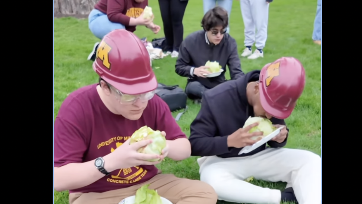 Students get together once a year for a stress reliever towards the end of the spring semester to have fun and see who can eat a head of lettuce the fastest. There were actually two winners for the competition this year, where Ethan Lie and Jared Burnett tied at 3 minutes and 32 seconds. Ethan was declared the winner by default because Jared is graduating this year, and the winner has to organize the event for next year. But still, default or not, a win is a win. We salute you, Head Lettuce Ethan Lie!